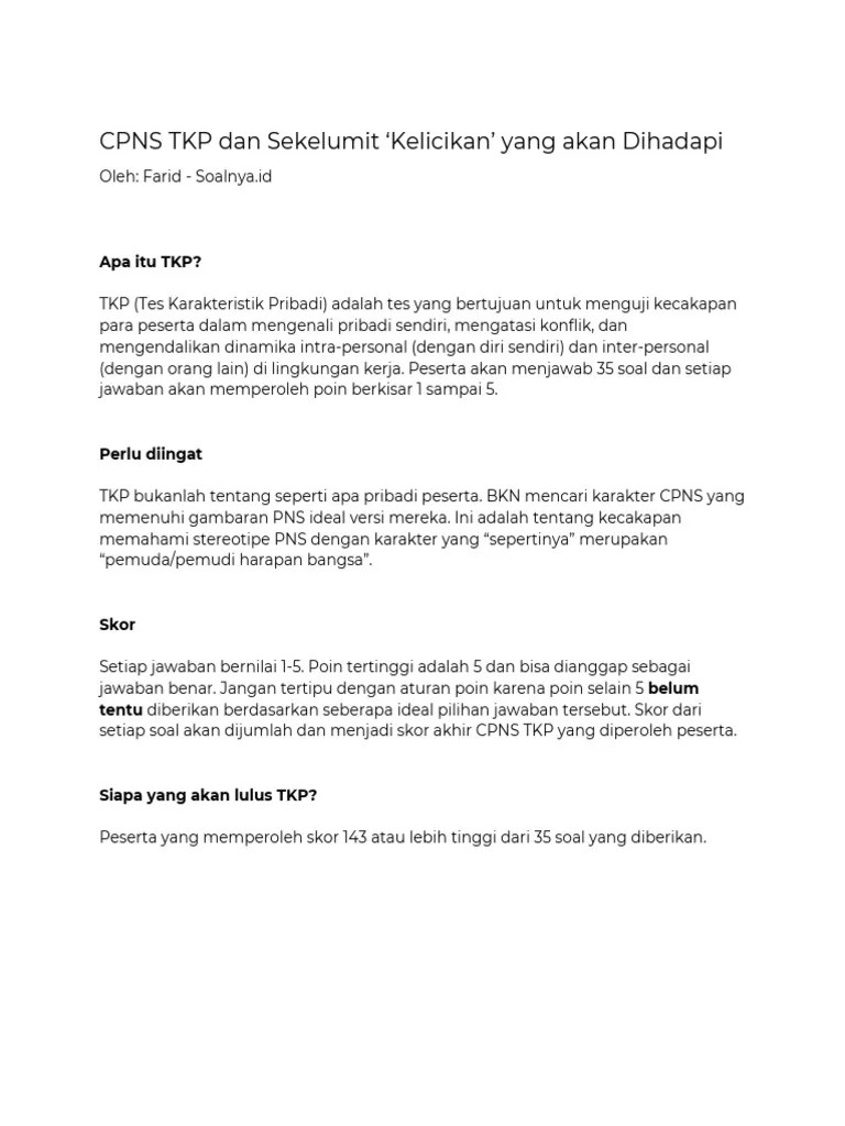 Soal skd terdiri dari dari 35 soal twk (tes wawasan.